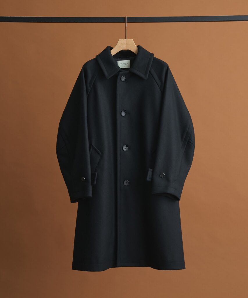 パブリックトウキョウ Super140sメルトンオーバーサイズバルカラーコート(ブラック)